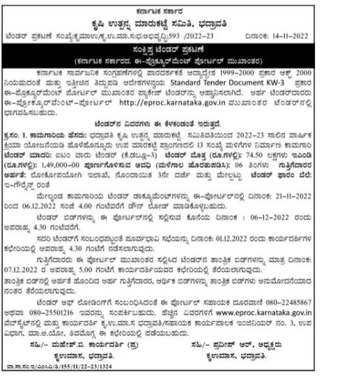 Tender For Construction of 13 No. Shops at Holehonur Sub Marakkatte premises