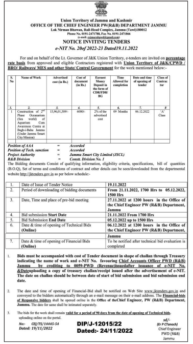 Tender for Construction of 2 Pha Oc (Sea world) of Aquarium Cum Awareness Centra Bagh-i-Baba Jas