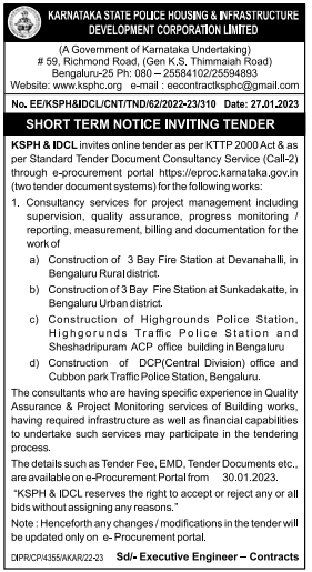 a) Construction of 3 Bay Fire Station at Devanahalli, in Bengaluru Rural district.