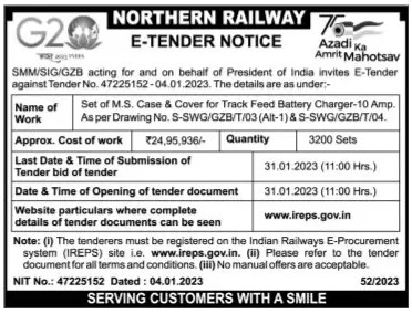 Tender for Construction of 4 lane Road Over Bridge with provision of 1. 3.00m Foot Over Bridge in lieu of L-xing No. 121 near Ayodhya Cantt. Railway Station of Lucknow Division on Northern Railway.