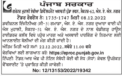 Tender for construction of access road and temporary parking lot at Chandigarh House Riders Club with Nagar.