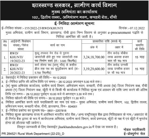 Tender for Construction of Bituminous Road from main Road City Style to Royal Apartment and RCC Drain from Boby ji house to Jagjit singh house under ward No- 24