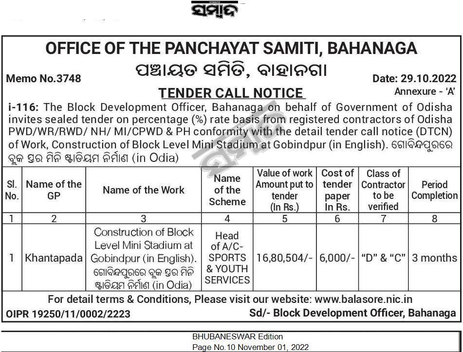 Construction of Block Level Mini Stadium at Gobindpur (in English). ଗୋବିନ୍ଦପୁରରେ ବ୍ଲକ ସ୍ତର ମିନି | ଷ୍ଟାଡିୟମ ନିର୍ମାଣ (in Odia)