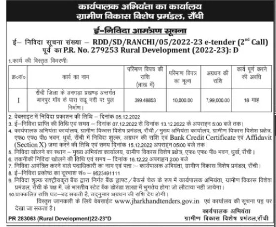 Special Region, F.P.P. Building, Dhurva, Ranchi And time till 15.12.2022 at 05:00 PM.