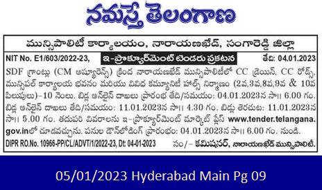 Tender for Construction of CC Drain, CC Roads, Municipal Office Building and Various Community Halls in Narayankhed Municipality under SDF Grants (CM Assurance)