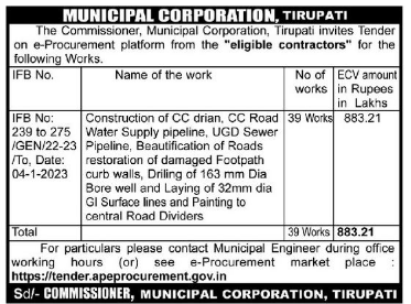 Construction of CC drian, CC Road Water Supply pipeline, UGD Sewer Pipeline, Beautification of Roads restoration of damaged Footpath curb walls, Driling of 163 mm Dia Bore well and Laying of 32mm dia GI Surface lines and Painting to central Road Dividers