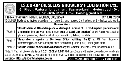 Tender for Construction of CC road in place of damaged Portions of BT road in plant premises and Stone pitching on west side slope area of Sterilizer section