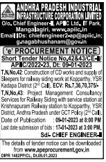 Tender for Construction of CD works and supply of Sleepers for railway siding work at Kopparthy, YSR Kadapa District