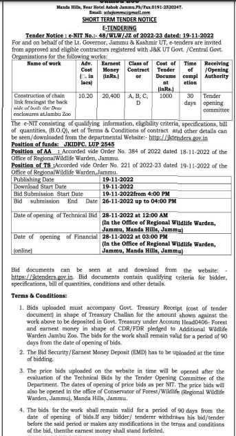 Tender for Construction of chain link fencingat the back side of both the Dear enclosures at Jambu Zoo