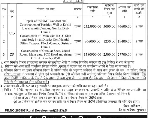 Tender for Construction of Circular Shed, Guard Room, Main gate, PCC Road and rising Of Ext. Boundry Wall