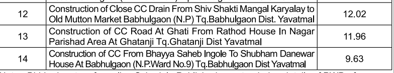 Tender for Construction of Close CC Drain From Shiv Shakti Mangal Karyalay to Old Mutton Market Babhulgaon (N.P) Tq.Babhulgaon Dist. Yavatmal