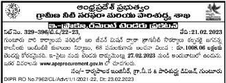Tender for Construction of door-to-door taps for Jagananna Colonies for provision of drinking water facilities through Jala Jeevan Mission within their office in Guntur