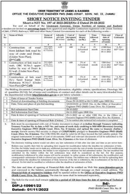 Tender for Construction of Drain and Protection Work H/O Munishi Ram Kanyala
