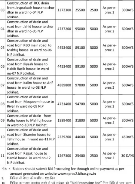 Tender for Construction of drain and road from Jahid house to chor dhar in ward no-05 N.P Jokihat.
