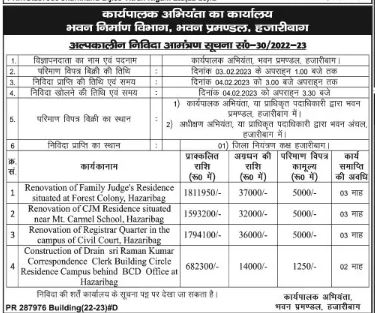 Tender for Construction of Drain sri Raman Kumar Correspondence Clerk Building Circle Residence Campus behind BCD Office at Hazaribag