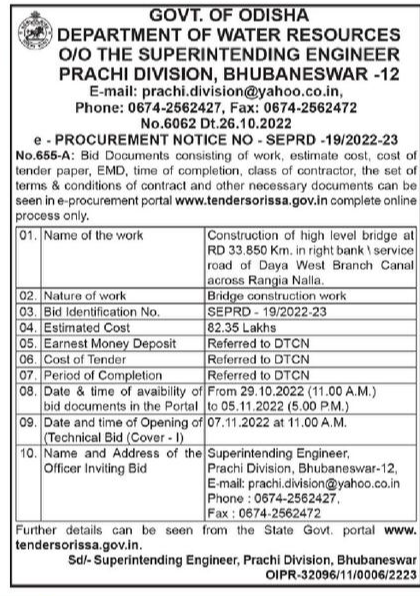 Construction of high level bridge at RD 33.850 Km. in right bank service road of Daya West Branch Canal across Rangia Nalla.
