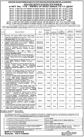 Tender for Construction of Lane/Drain from main road to Rattan Lal house at PYT. Makwal BDC District Capex Budget 2022-23