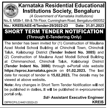 Tender for Construction of Maulana Azad Model School Building at Chimmanchod, Chincholi Taluk, Kalaburagi District