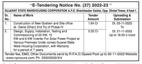 Tender for Construction of New Godown and Site office at: Devia (Dhari) 2nd Try of Phase-IV