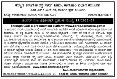 Tender for Construction of Office Building of Regional Transport Officers of Transport Department at Yadgir