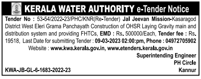 Tender for Construction of OHSR Laying Gravity main and distribution system and providing FHTCS,