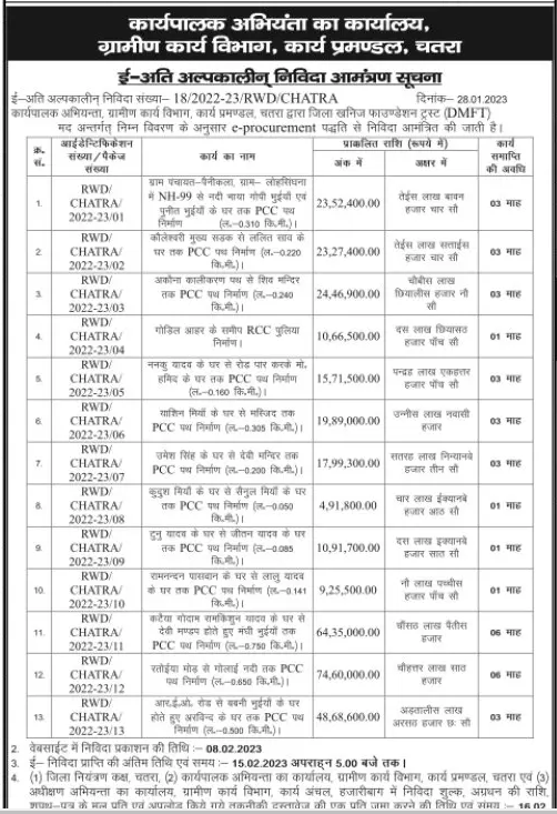 Tender for Construction of PCC road from Rasoiya Mor to Golai river (L. 0.650 km).