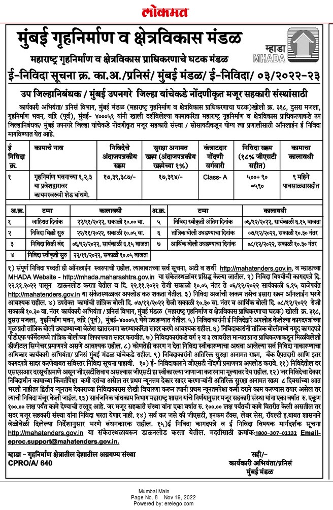 Tender For Construction of permanent shed at 1, 2, 3 entrance of Housing Building. A.Kr.