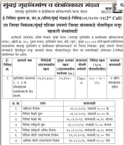 Tender for Construction of permanent sheds at entrance 1, 2, 3 of Housing Building.