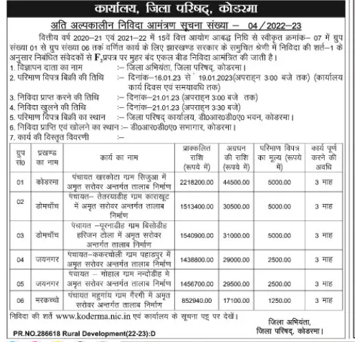 Tender for Construction of pond under Amrit Sarovar in Panchayat Tetrayadih village