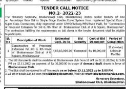 Tender for Construction of Proposed Extension 3d & 4th Fer of Bhubaneswar Club AG Estimated