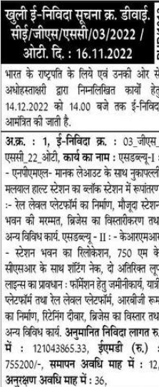 Tender for construction of RBG room, retaining wall, expansion of bridges and other miscellaneous works.