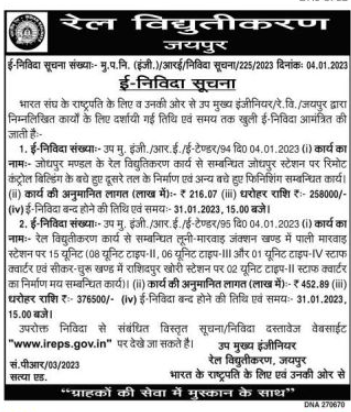 Tender for Construction of remaining second floor of remote control building at Jodhpur station related to railway electrification work of Jodhpur division