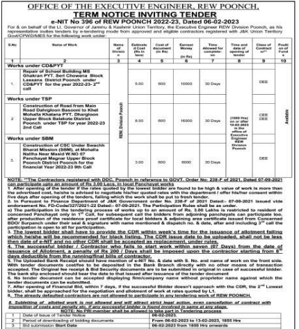 Tender for Construction of Road from Main Road Dahrgloon Basconi to Khet Mohalla Khatana PYT. Dhargloon Upper Block Balakote District Poonch under TSP for year 2022-23 2nd Call