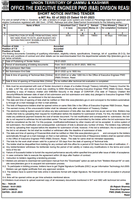 CONSTRUCTION OF ROAD FROM NATIONAL HIGHWAY MAIN ROAD TO KOTE JAGIR BUADATI DEV SATHAN PANCHAYAT BHAMBLA BLOCK POUNI (L=350MTR)