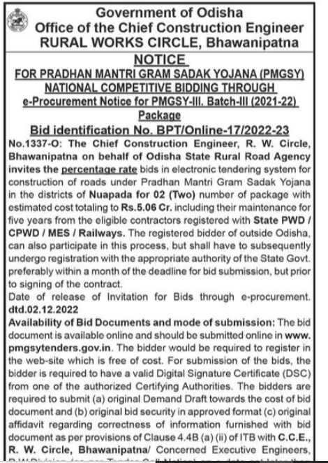 construction of roads under Pradhan Mantri Gram Sadak Yojana