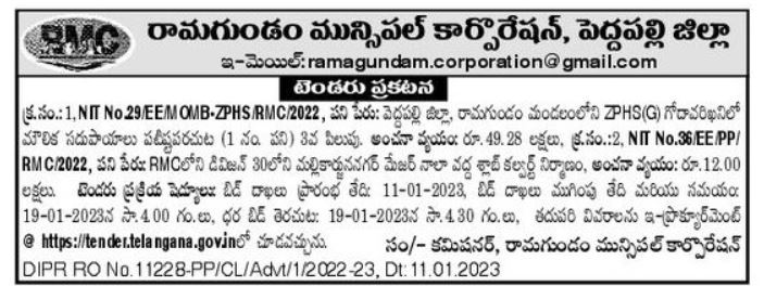 Tender for Construction of Sab Culvert at Mallikarjunanagar Major Nala, Division 30, RMC