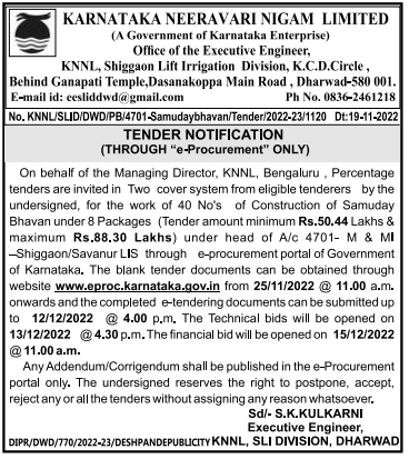 Tender for Construction of Samuday Bhavan under 8 Packages