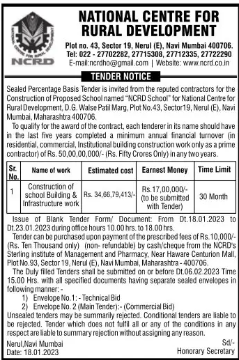 Tender for Construction of school Building & Infrastructure work