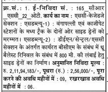 Repair of side drains on both sides of track between Vangapalli and Kazipet stations SW-2)Through ballast renewal in respect of BCM working under DEN/Central/SC section 800 m. Construction of side drains