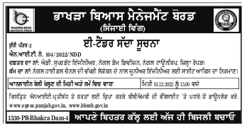 Tender for Construction of Site Office for Junior Engineer with separate location of Nangal Hydel Channel.