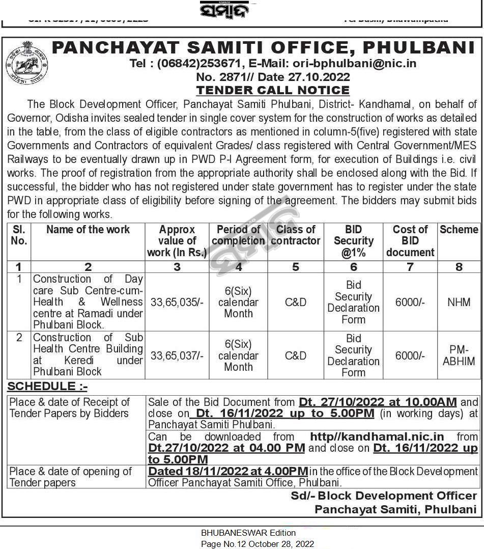 Construction of Sub Health Centre Building at Keredi Phulbani Block