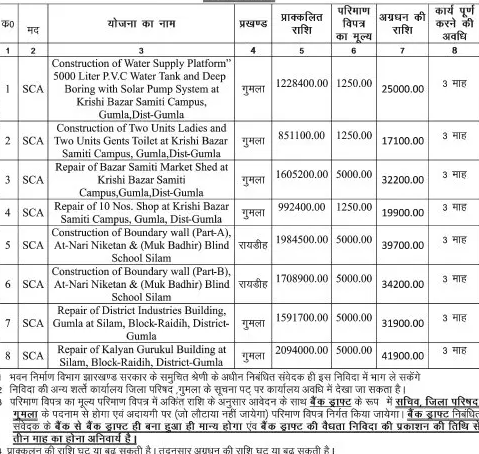 Tender for Construction of Water Supply Platform | 5000 Liter P.V. C. Water Tank and Deep Boring with Solar Pump System at Krishi Bazar Samiti Campus, Gumla, Dist-Gumla