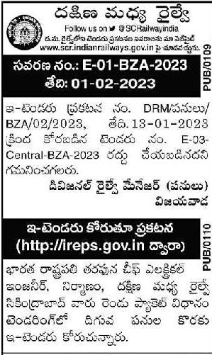 Tender for Construction, South Central Railway,