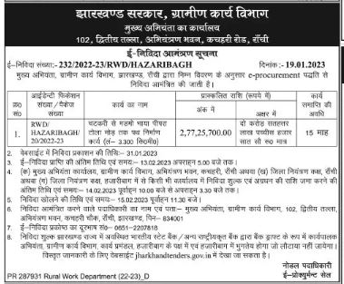 Tender for Construction work done from Chatkari to Peep Tola God (2,300 km)