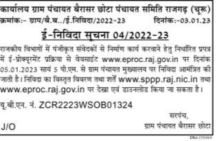 Tender for construction work done from the registered contractors in the government departments, through the e-procurement process in the prescribed form on the website www.eproc.raj.gov.in
