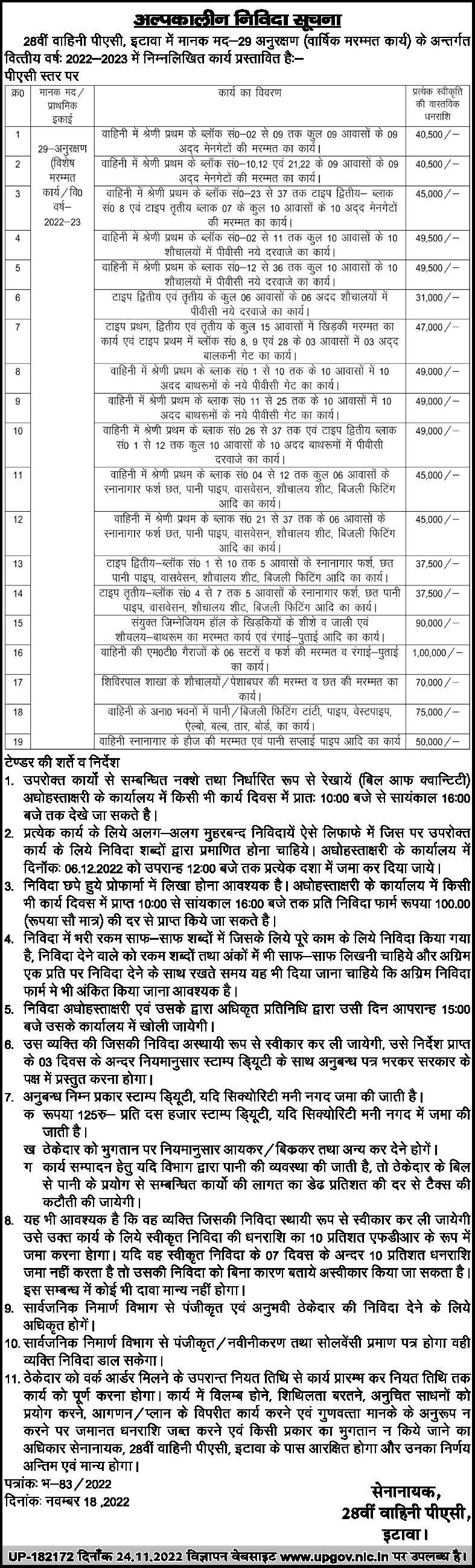 Tender for Construction work of 1000 and 600 mm hum pipe culverts in Kukrgaon Shahzadpura Tiktauli link road