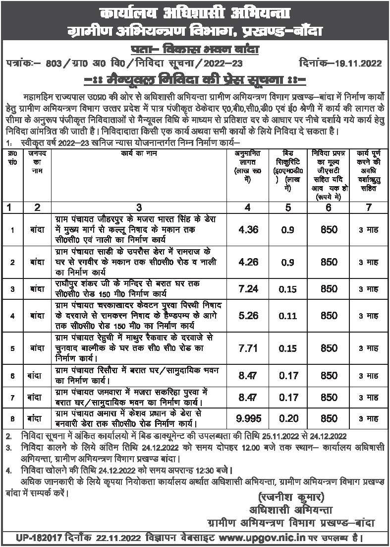 Tender for Construction work of 150 m CC road from Radhapur Shankar ji’s temple to Barat Ghar