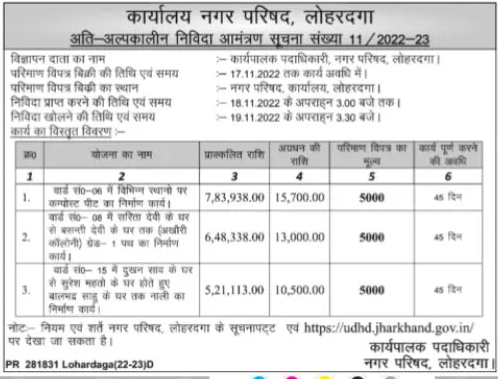 Tender for Construction work of compost peat at various places in Ward No.-06.