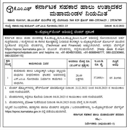 Karnataka Halu Maha Mandal invites tender (Technical and Financial) through