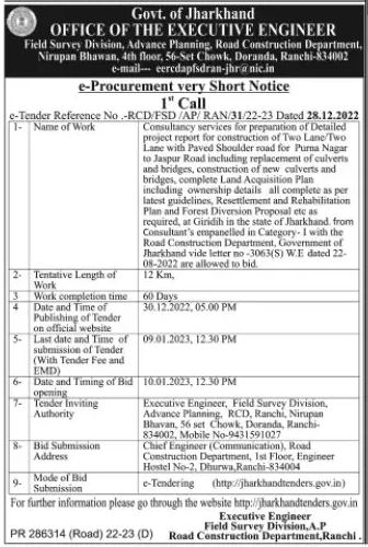 Jharkhand vide letter no-3063(S) WE dated 22-